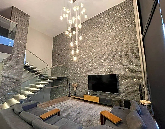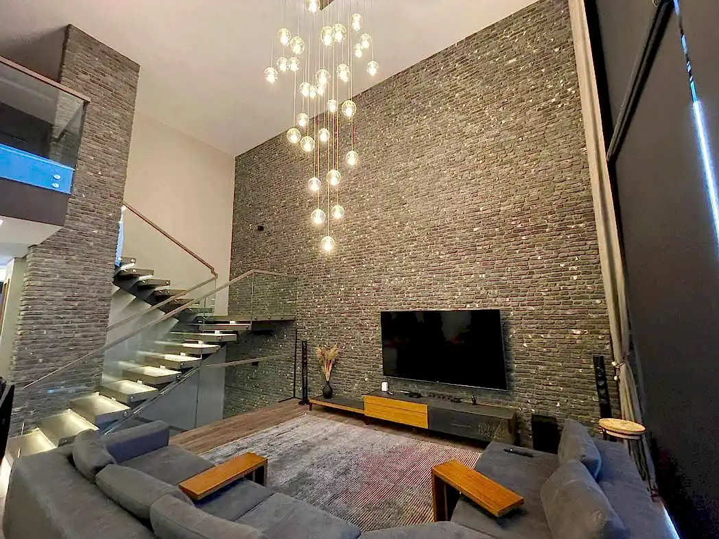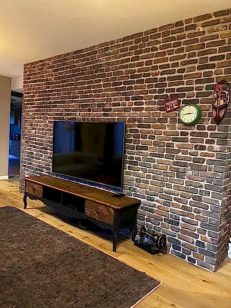 Duvar kaplaması: Bir veya birkaç duvarı dekoratif taş veya tuğlalarla kaplayarak odanın karakterini artırabilirsiniz. Özellikle oturma odası, yemek odası veya şömine alanları gibi odalar için etkileyici bir görsel vurgu oluşturabilirsiniz.
